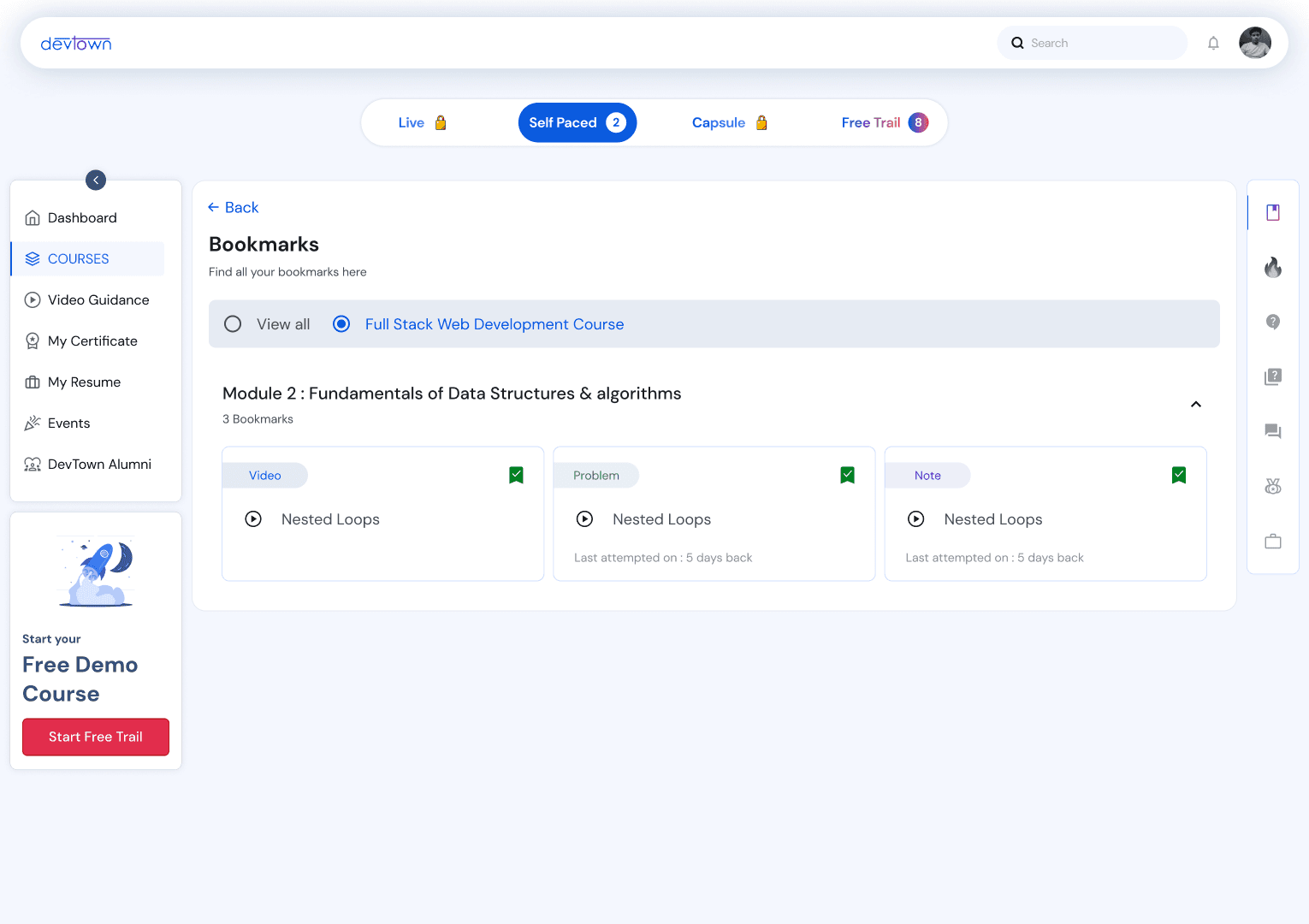 Bookmarks: Easy access to essential resources for streamlined learning.