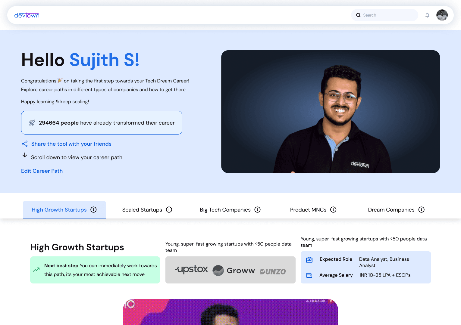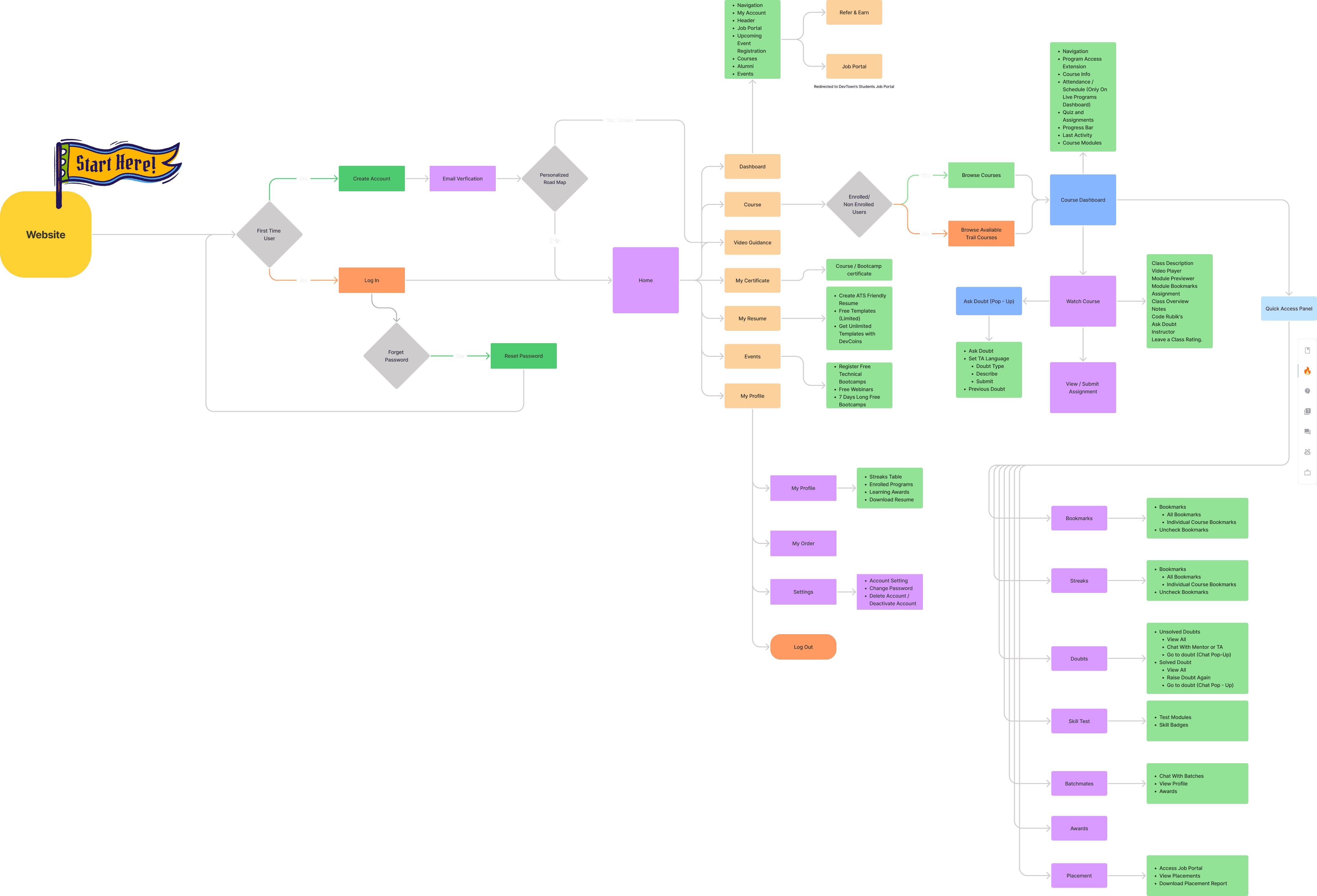 Conducted interviews with 100+ students (both enrolled and non-enrolled) and 10+ mentors. Key pain points included difficulty in tracking progress and limited student support. Research insights were used to create detailed user personas and inform design decisions.