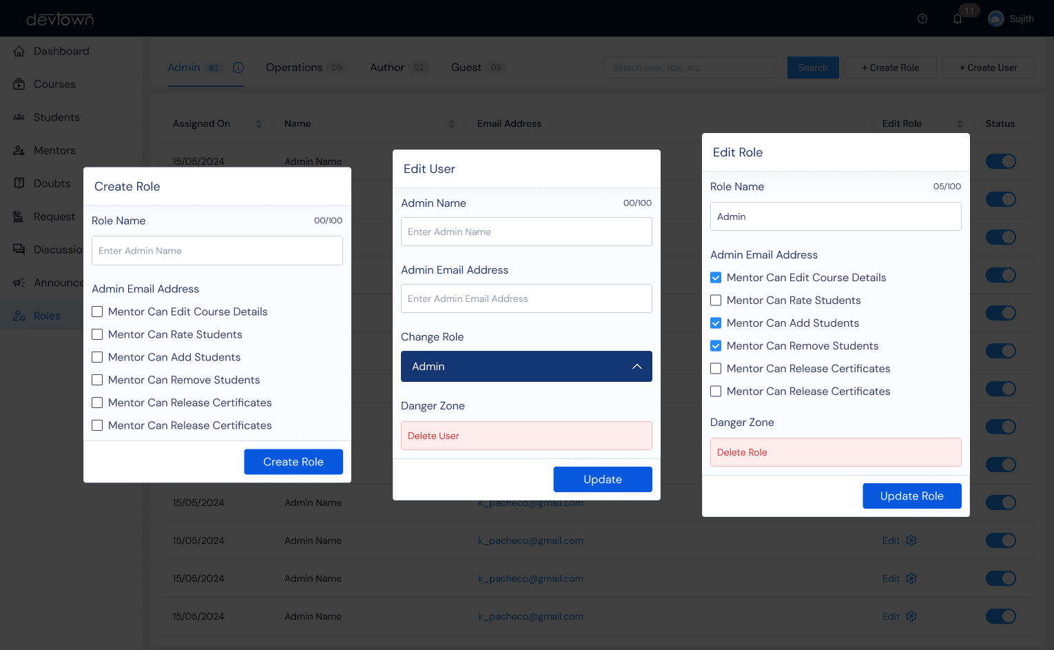Add, manage, or remove users (students and mentors) and assign roles with appropriate permissions. Role-Based Access Control