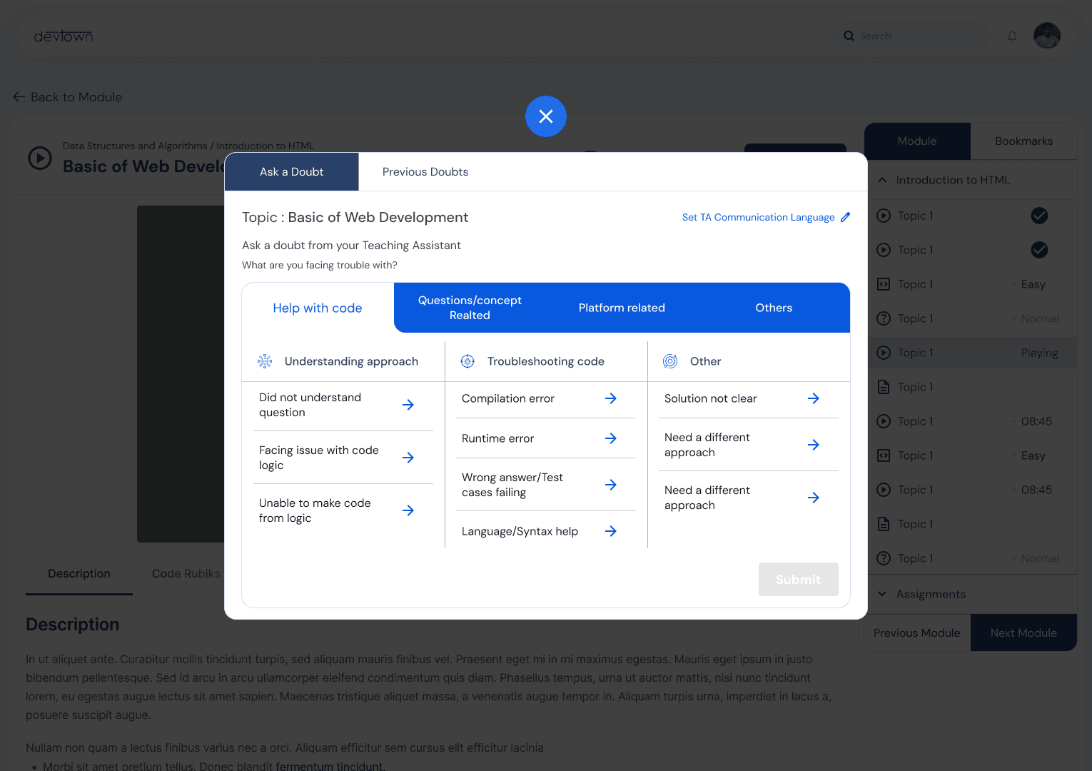 A dedicated space for doubt-solving with mentors or peers and feedback tools to improve the learning experience.