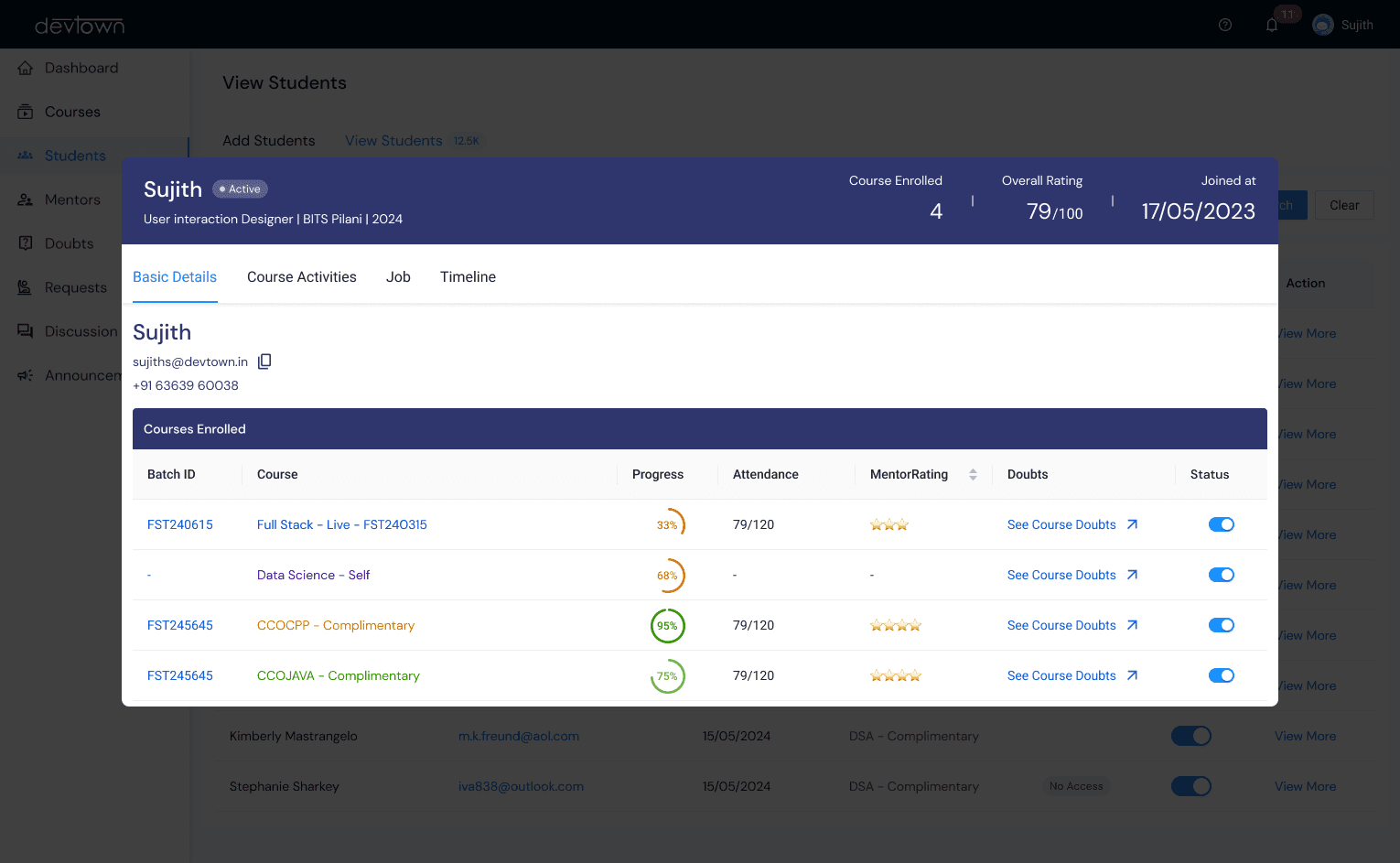 Empowering Educators, DevTown’s LMS simplifies course creation, enhances student interaction, and streamlines administrative tasks—all in one seamless platform.